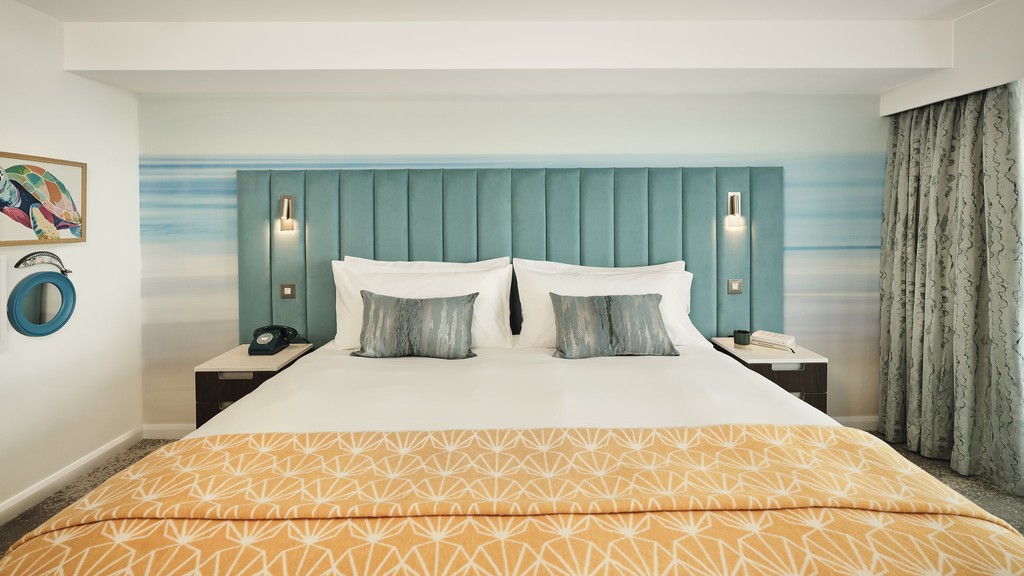 Our design-led hotel in Torquay offers 153 serene bedrooms, thoughtful amenities including parking and a fitness centre, and a one-of-a-kind rooftop bar opening seasonally, where you can soak in strikingly beautiful coastal views.